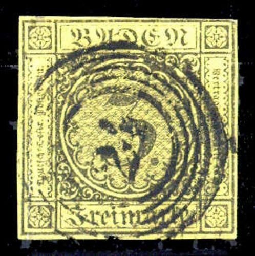 1851, 3 Kr. schwarz a. gelb, vollrandiges gestempeltes Prachtstück mit RNS "24"