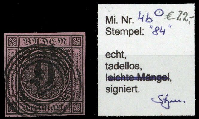 1851, 9 Kr. schwarz a. karminrosa, vollrandiges gestempeltes Prachtstück, gepr. Stegmüller BPP