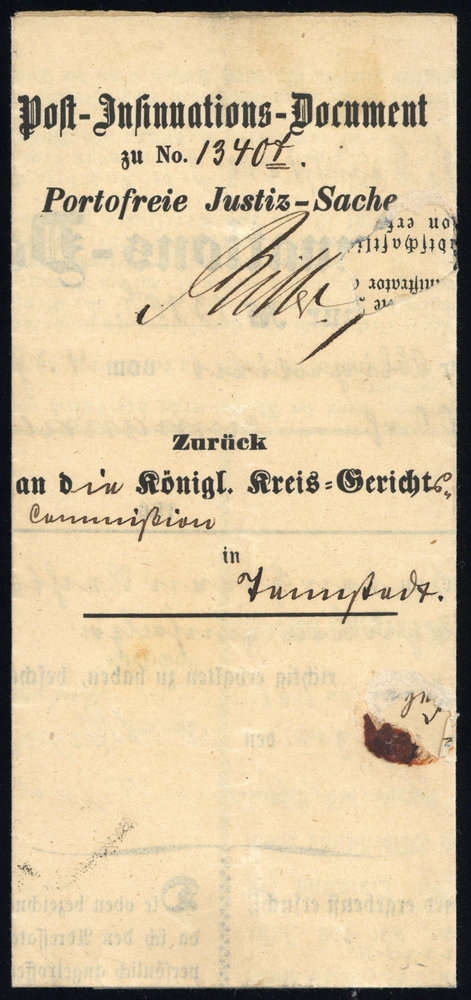 1862, Post-Insinuations-Dokument, Siegel entfernt, nach Langensalza, Beförderungsspuren, Faltungen, zurück nach Tennstadt
