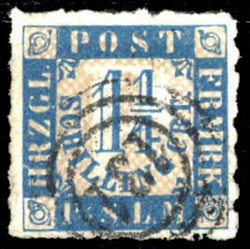1864, 1 1/4 S. blau/rosa, gestempeltes Prachtstück mit fast kopfstehendem RNS "131"