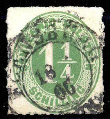 1865, 1 1/4 S. grün, gestempeltes Prachtstück (ME 25,-)