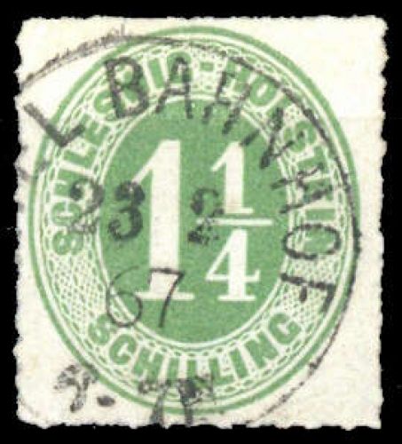 1865, 1 1/4 S. grün, gestempeltes Prachtstück, sign. Köhler (ME 30,-)