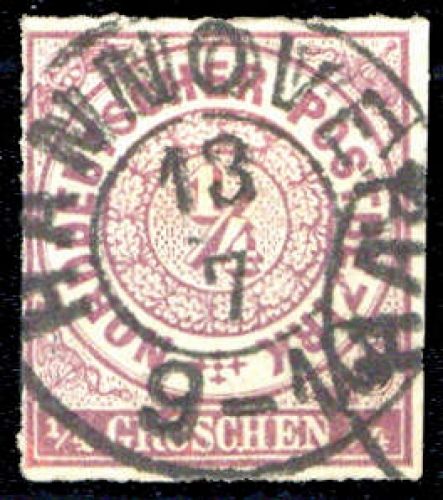 1868, 1/4 Gr. violett, gestempeltes Prachtstück