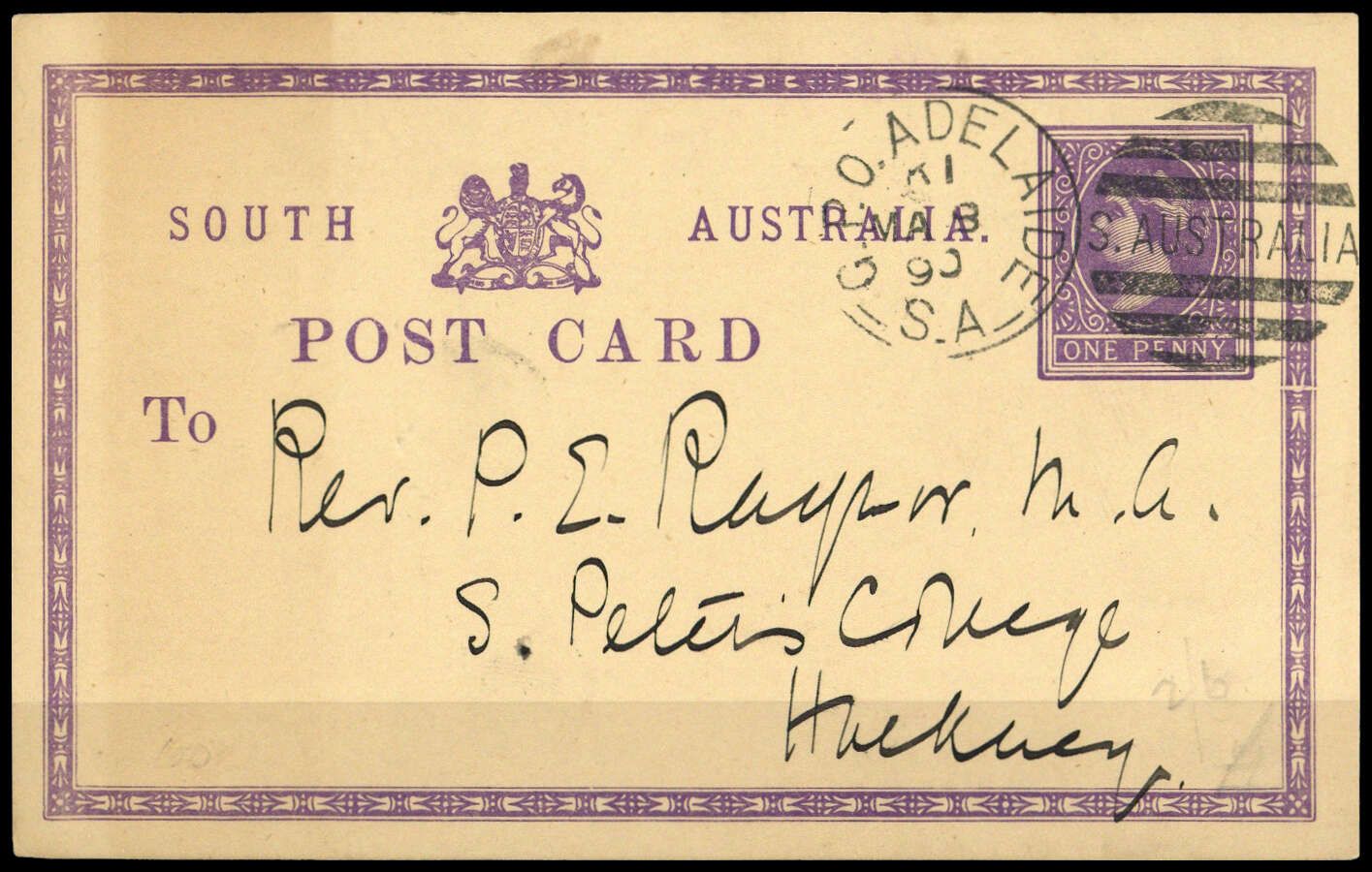 1885, 1 P blauviolett/sämisch-rahmfarben, GSK Viktoria im Eirund, Duplex "G.P.O. ADELAIDE MA 8 90/S. AUSTRALIA", Beförderungs- Altersspuren, nach Hockney