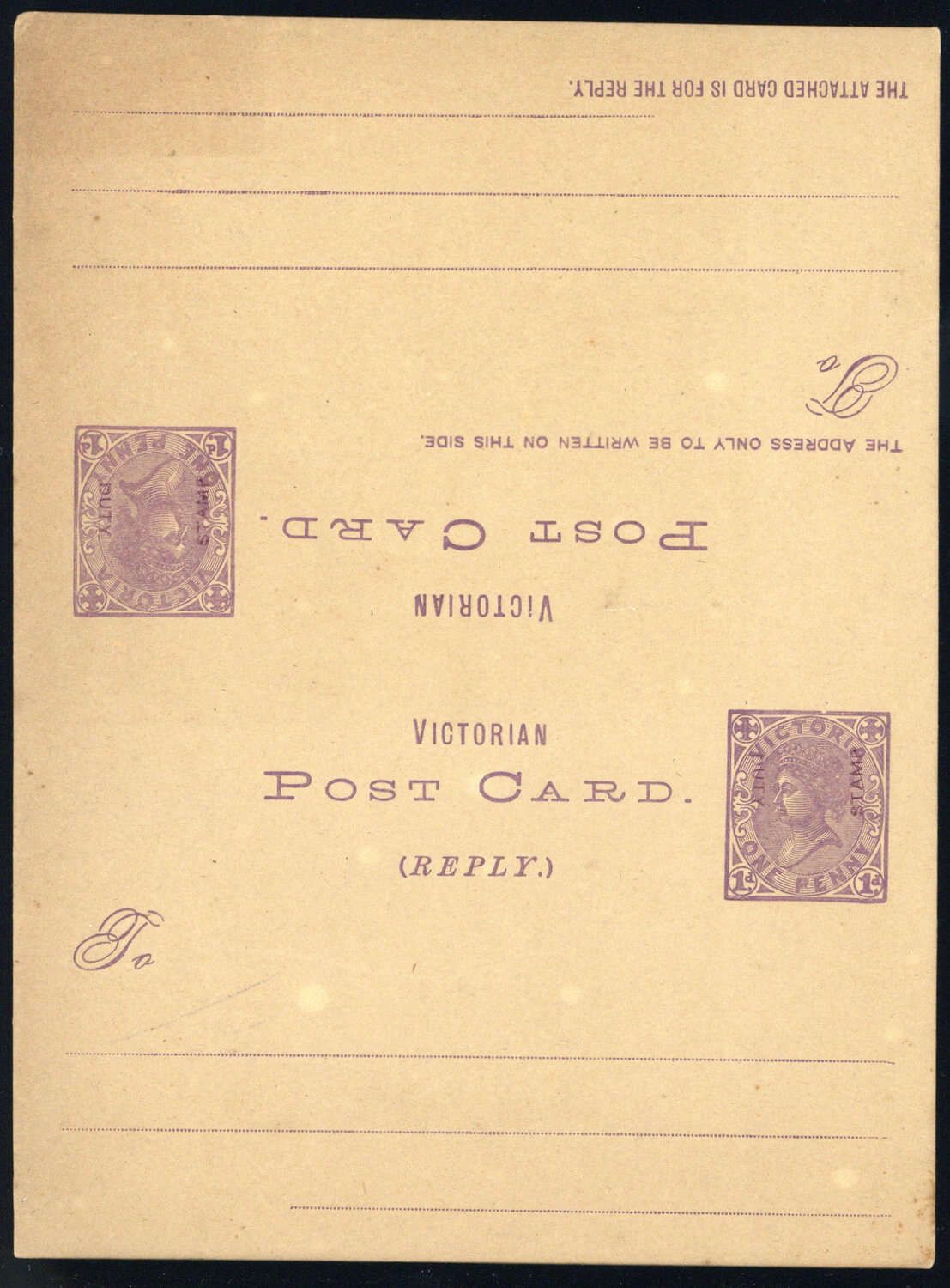 1885, 1+1 P violett/sämisch, Doppelkarte mit senkrechtem Aufdruck "STAMP DUTY", ungebraucht, Altersspuren