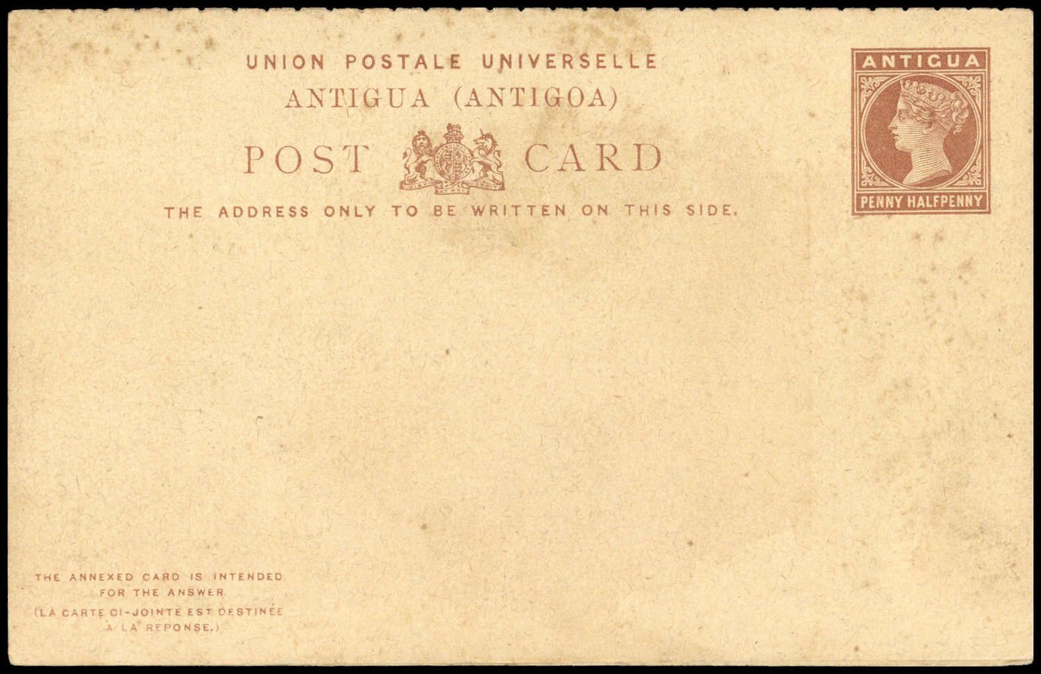 1886/87, 1 1/2 +1 1/2 Penny rotbraun, Doppelkarte Antillenzeichnung ungebraucht, Altersspuren