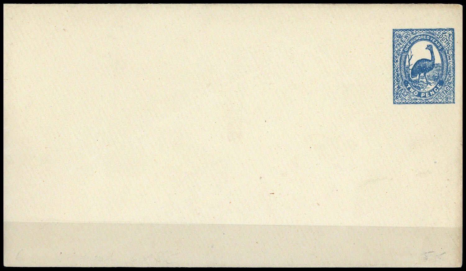 1888, 2 P blau/weiß, PU Emu, spitze Klappe, schraffiert, ungebraucht