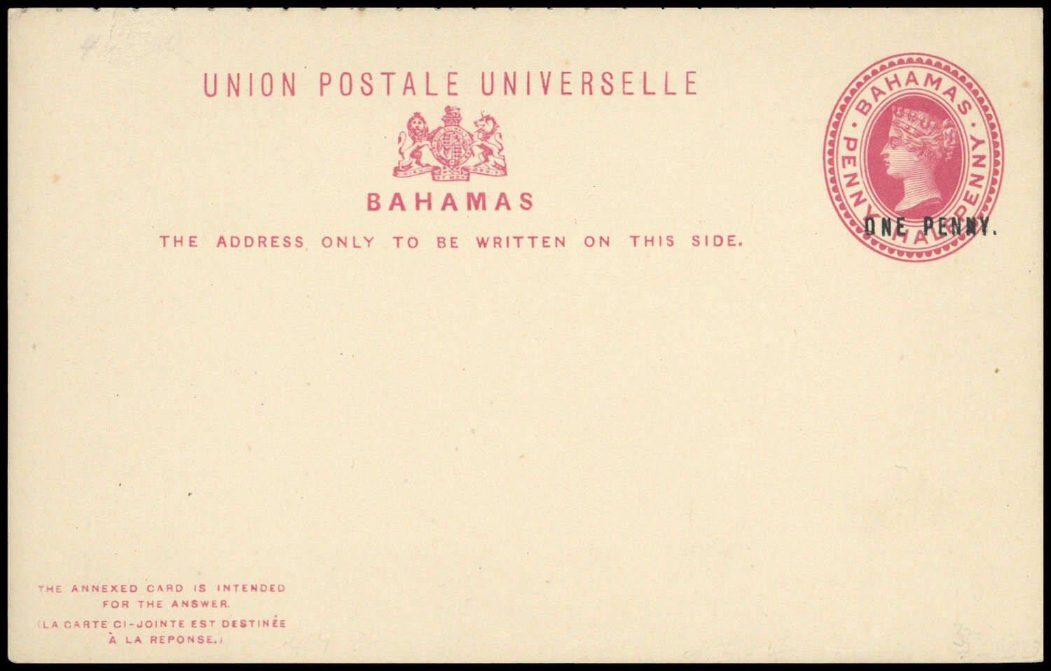 1892, ONE PENNY auf 1 1/2 + 1 1/2 Penny karmin, Doppelkarte Viktoria/Eirund, ungebraucht, Altersspuren