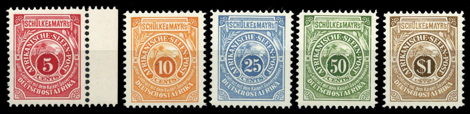 1892, 5 Werte Ostafrikanische Seenpost "Schülke & Mayr" als kompletter Satz tadellos postfrisch im Nachdruck ohne Netzunterdruck (ME 300.-)