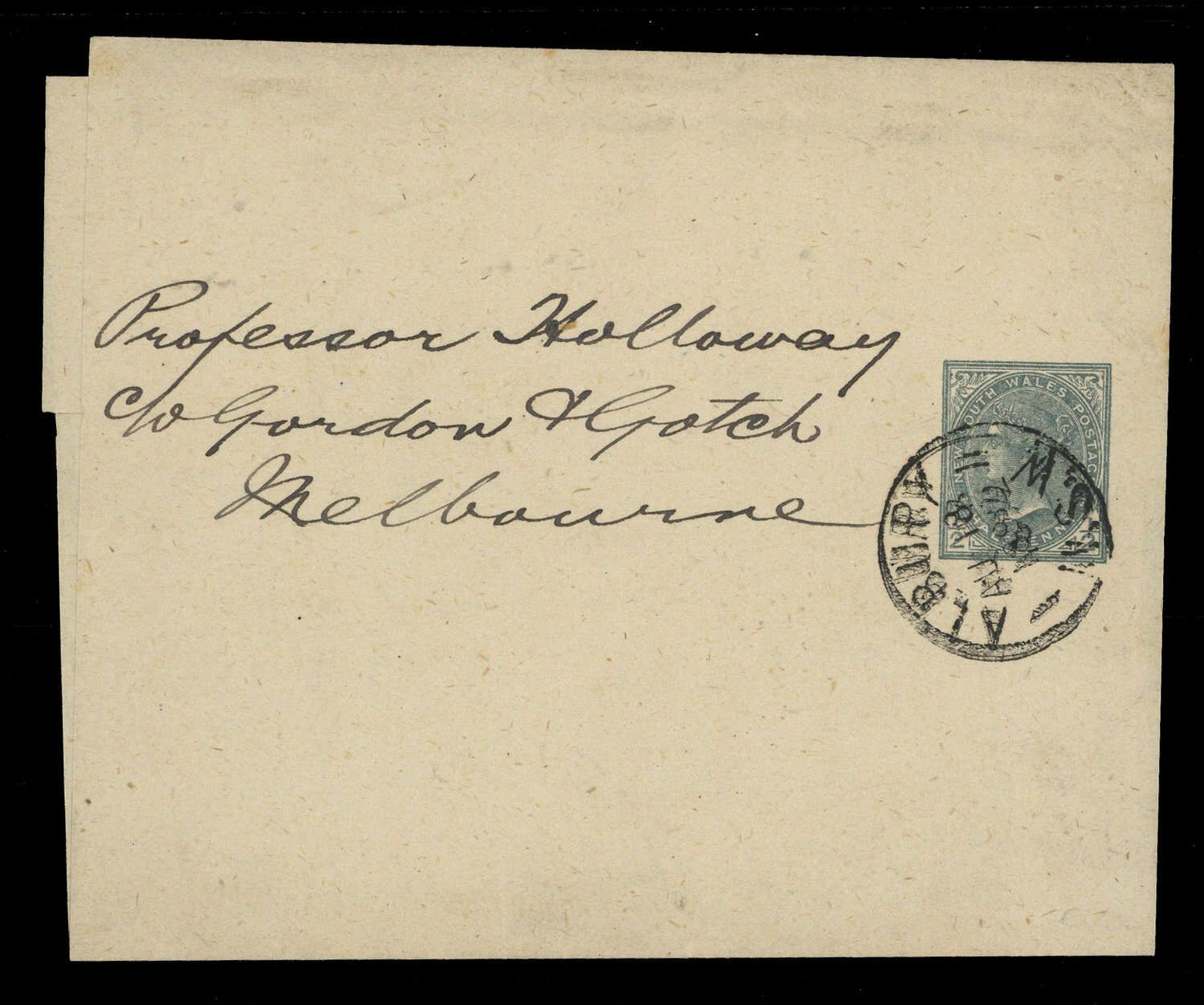 1892, 1/2 P grau, Streifband Viktoria, K1 "ALBURY AU 18 1892", Beförderungsspuren, nach Melbourne