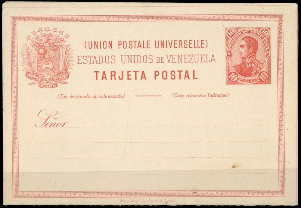 1893, 10+10 C ziegelrot/weiß, Doppelkarte Bolivar, Altersspuren, ungebraucht