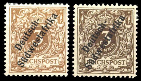 1898, 3 Pfg. Krone/Adler mit Aufdruck zu 2 verschiedenen Farben ungebraucht