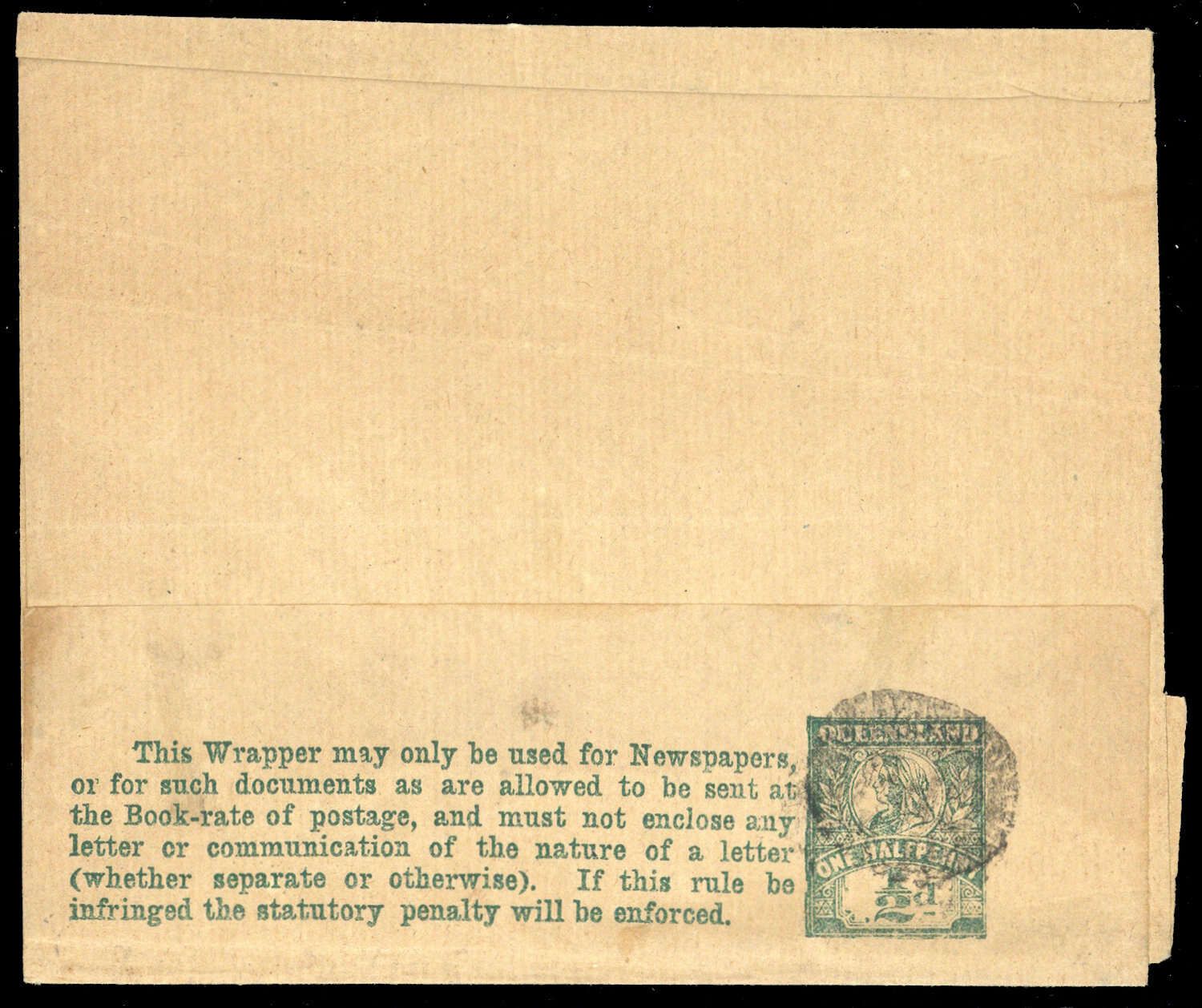 1899, 1/2 P grün, Streifband Königin im Kreis, Ovalstempel, Faltungen, Gebrauchs- Altersspuren