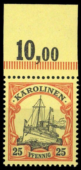 1900, 25 Pfg. Kaiseryacht als postfrisches ndgz. Platten- Oberrandstück