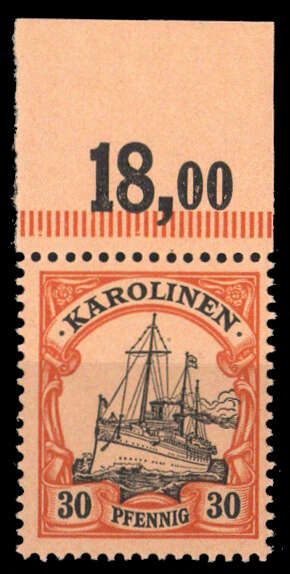 1900, 30 Pfg. Kaiseryacht als postfrisches ndgz. Platten- Oberrandstück