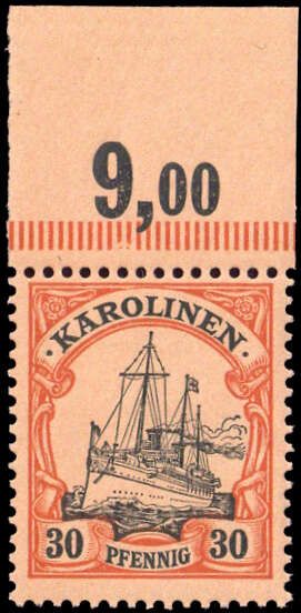 1900, 30 Pfg. Kaiseryacht als postfrisches ndgz. Platten- Oberrandstück