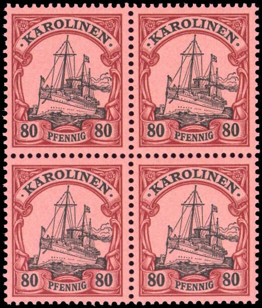 1900, 80 Pfg. Kaiseryacht ohne Wasserzeichen im postfrischen 4-er Block