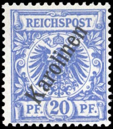 1900, 20 Pfg. Deutsches Reich Krone/Adler mit Aufdruck ungebraucht und der Druckzufälligkeit "rechte untere Ecke gebrochen"