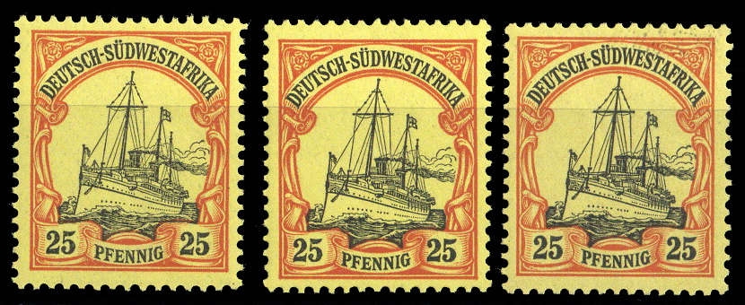 1901, 3 Stück 25 Pfg. Kaiseryacht ohne Wasserzeichen postfrisch (ME 21.-)