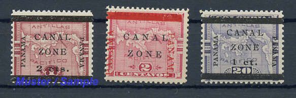 1904, 3 Überdruckwerte Panama-Kanalzone postfrisch!