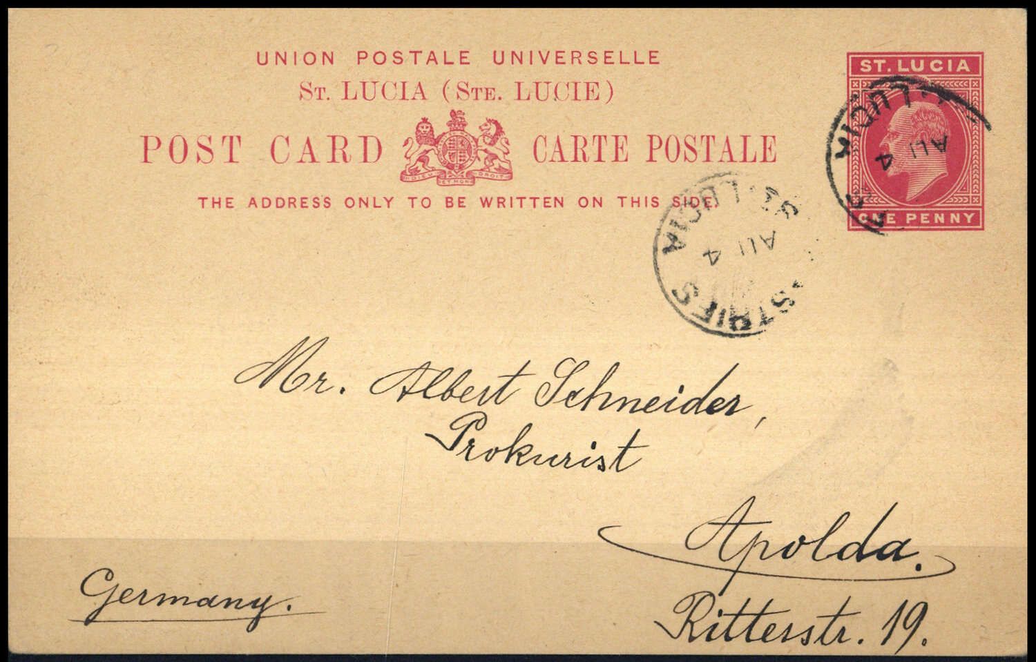 1905, 1 P karmin, GSK Eduard, K1 "(CA)STRIES AU 4 ..", Beförderungs- Altersspuren, nach Apolda