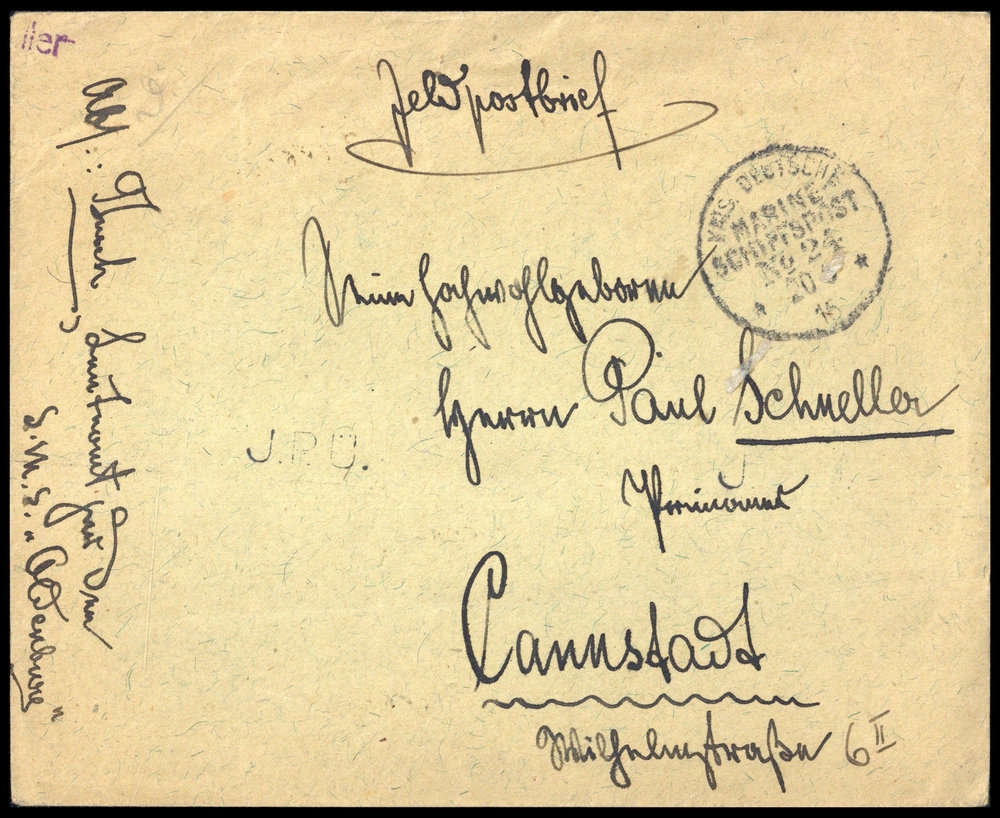 1915, "MSP No.24 20.5.15", K1 (SMS Oldenburg), Feldpostbrief, Beförderungs- Altersspuren, nach Cannstadt