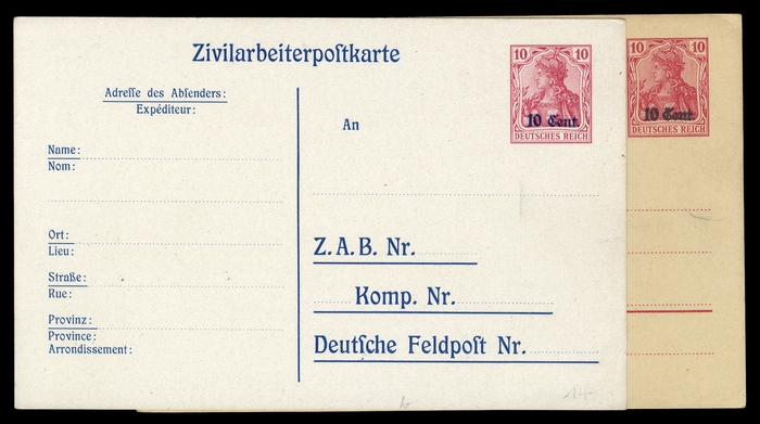 1916/18, 2 Zivilarbeiterpostkarten, je ungebr., Gebrauchsspuren