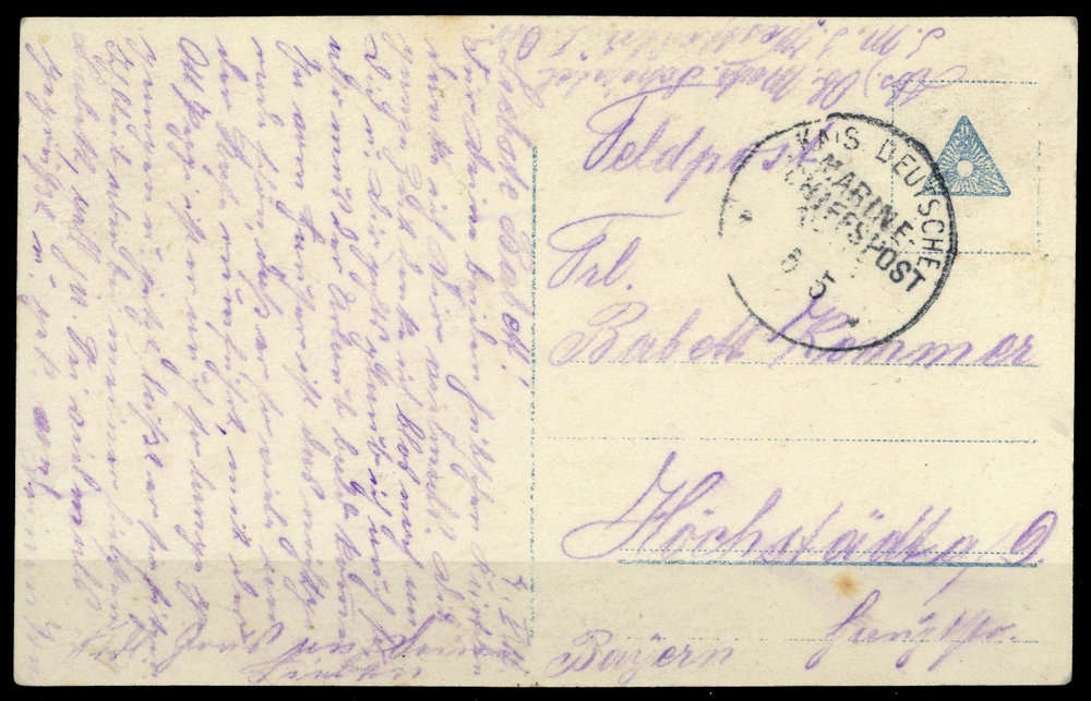 1916, "MSP (15) 5/5/(16)", SMS "WESTFALEN", K1 auf brauner FP-Ak (Im Geschützraum eines Kriegsschiffes), Beförderungs-, leichte Altersspuren