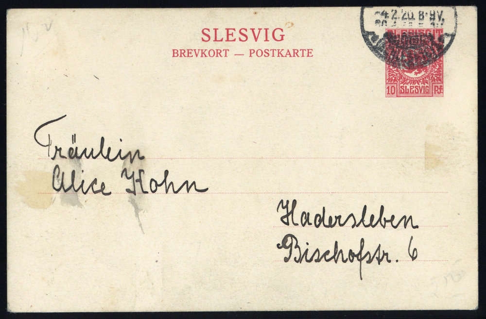 1920, Deutsches Abstimmgeb. Schleswig, P 2, Brief