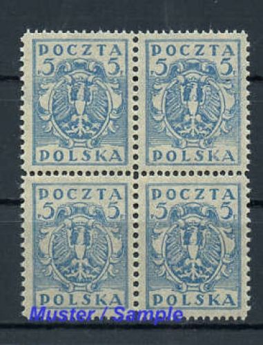 1922, 5 F. Wappenadler postfrischer 4-er Block, übliche Erhaltung (ME 40.-)