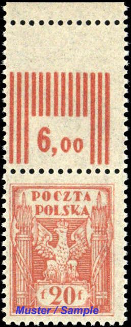 1922, 20 F. Wappenadler als postfrisches Oberrandstück in der Größe und Form eines Leerfeldes, übliche Erhaltung