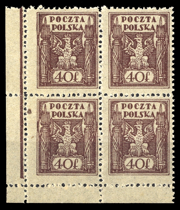 1922, 40 F. Freimarke Wappenadler als postfrischer Eckrand 4-er Block l.u.