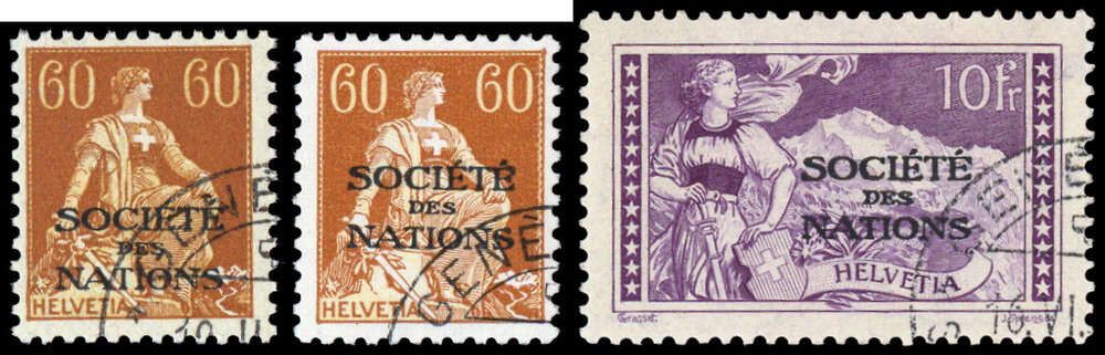 1922, 15 Werte Freimarken Schweiz mit SDN-Aufdruck als kompletter Satz sauber gestempelt mit den Typen "x" und "z" (ME 750.-)