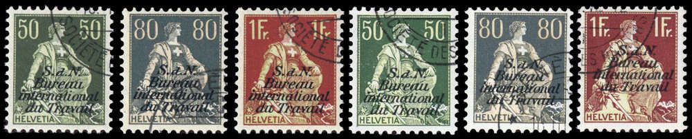 1923, 14 Werte Freimarken Schweiz mit BIT-Aufdruck als kompletter Satz sauber gestempelt mit den Typen "x" und "z" (ME 670.-)
