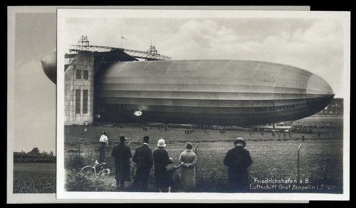 1928, zwei s/w-Karten "Graf Zeppelin LZ 127", ungebraucht und einmal gelaufen mit LZ 127 Nebenstempel, Aubert Ulrich Ravensburg und GALZ