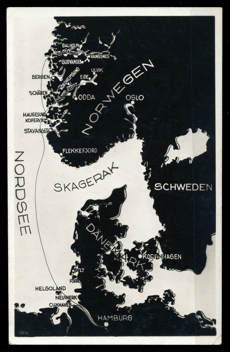 1930 ca., "Reiseweg in den Hardanger-und Sognefjord Norwegens", ungebrauchte Fotokarte, rs. mit Bleistift beschriftet