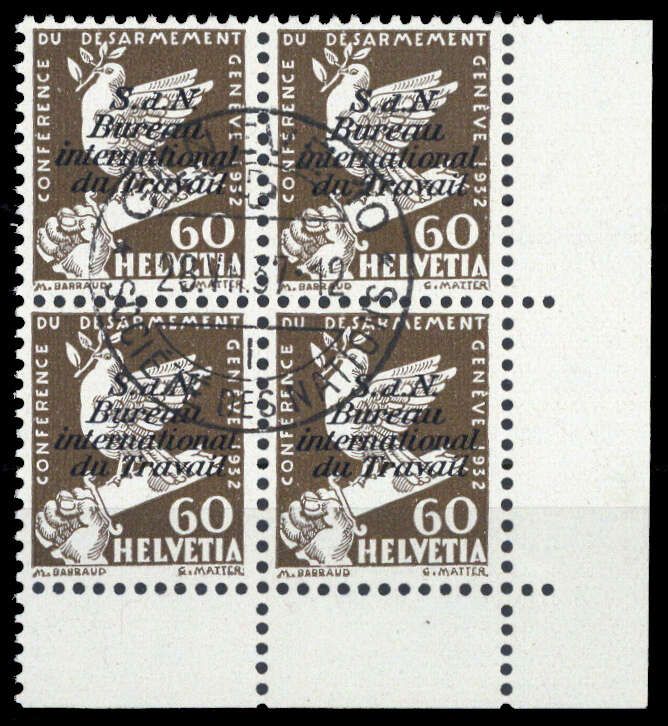 1932, 60 Rp. Abrüstungskonferenz im gestempelten Eck 4-er Block r.u.