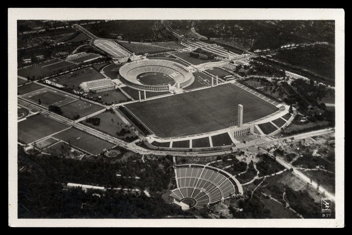1936, s/w-Karte "Gesamtansicht Reichssportfeld", gelaufen mit SST, RSV 14
