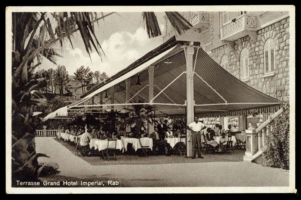 1937, 2 Din Peter II auf Auslands- Fotokarte "Grand Hotel Imperial Insel Rab" vom 01.09.1937 mit Stempel Rab-Stinica 356 nach Menzikon, Aargau