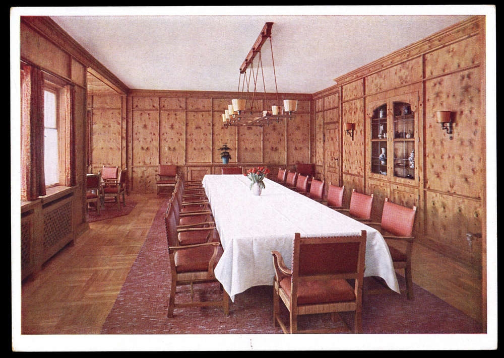 1938, Farbkarte "Der Berghof Speisesaal", ungebraucht, leichte Alterungsspuren, Hoffmann 470