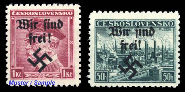 1938, 2 Werte Freimarken postfrisch mit Sudetenland-Überdruck, signiert