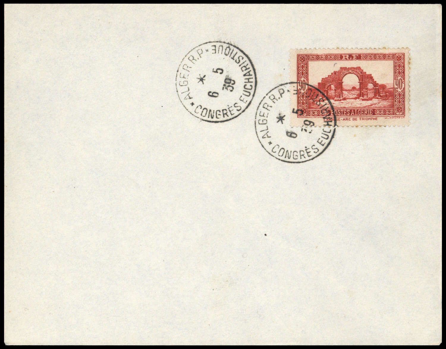 1939, 90 C Lambese, K1 "ALGER CONGRES EUCHARISTIQUE 6 5 39", Altersspuren, Blankoumschlag