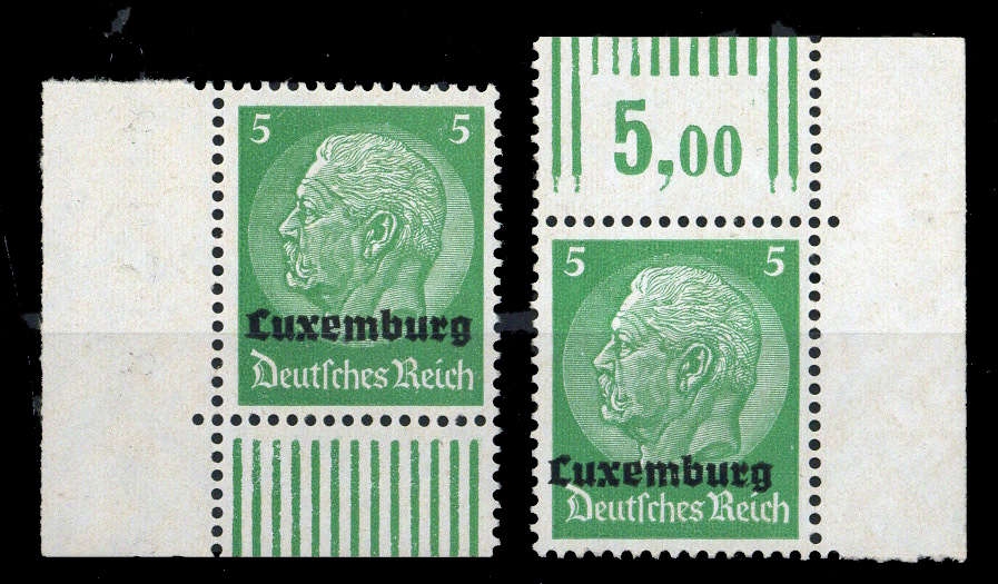 1940, 5 Pfg. Hindenburg als postfrische Bogenecke r.o. und l.u.