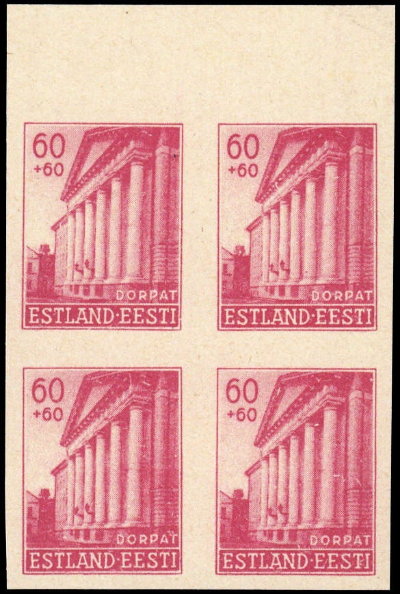 1941, 60+60 Kopeken Wiederaufbau auf ungummiertem Papier hergestellt als ungezähnter 4-er Block ohne Netzüberdruck