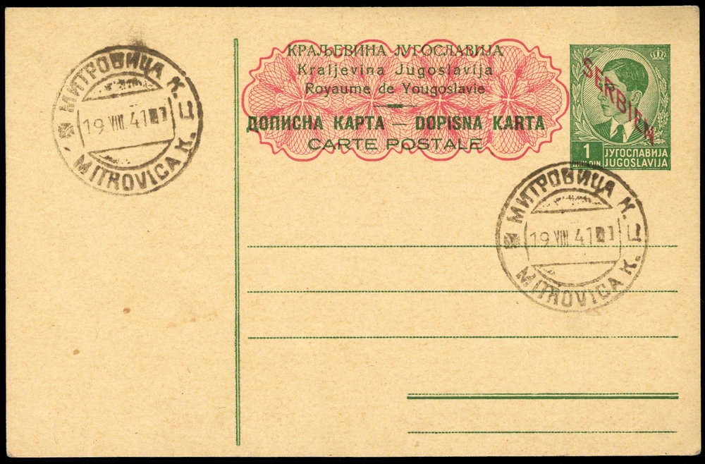 1941, 1 D. König, blankogestempel "Mitrovica 19 VIII 41"
