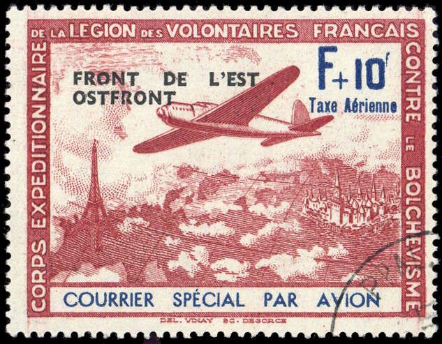 1942, + 10 Fr. Flugpostmarke gestempelt mit Gefälligkeitsentwertung (ME 75.-)