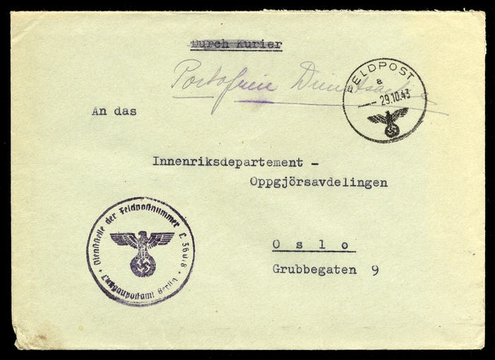 1943, Portofreie Dienstsache per "Feldpost 29.10.43" nach Oslo (Norwegen)
