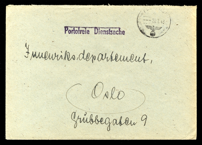 1943, Portofreie Dienstsache per "Feldpost 27.7.43" nach Oslo (Norwegen)