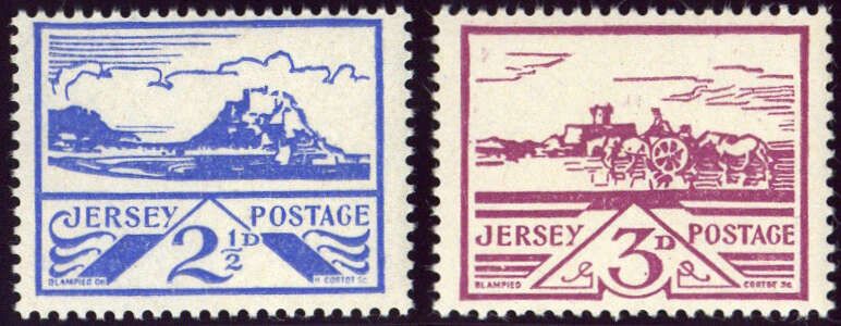 1943, 6 Werte Freimarken Ansichten von Jersey komplett postfrisch (ME 60.-)