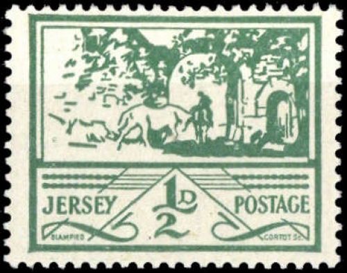 1943, 1/2 P. Freimarke Ansichten von Jersey in postfrischer Erhaltung